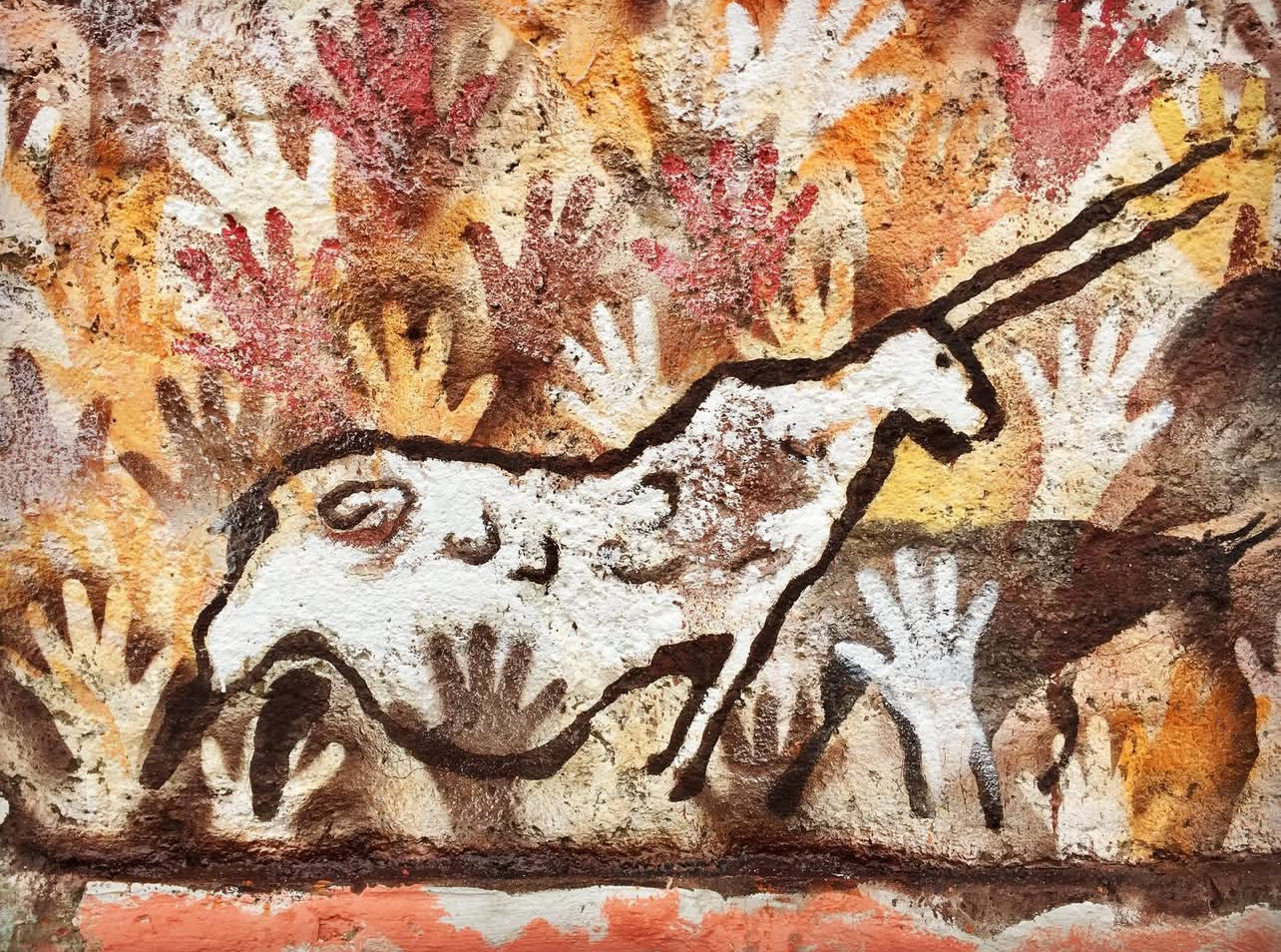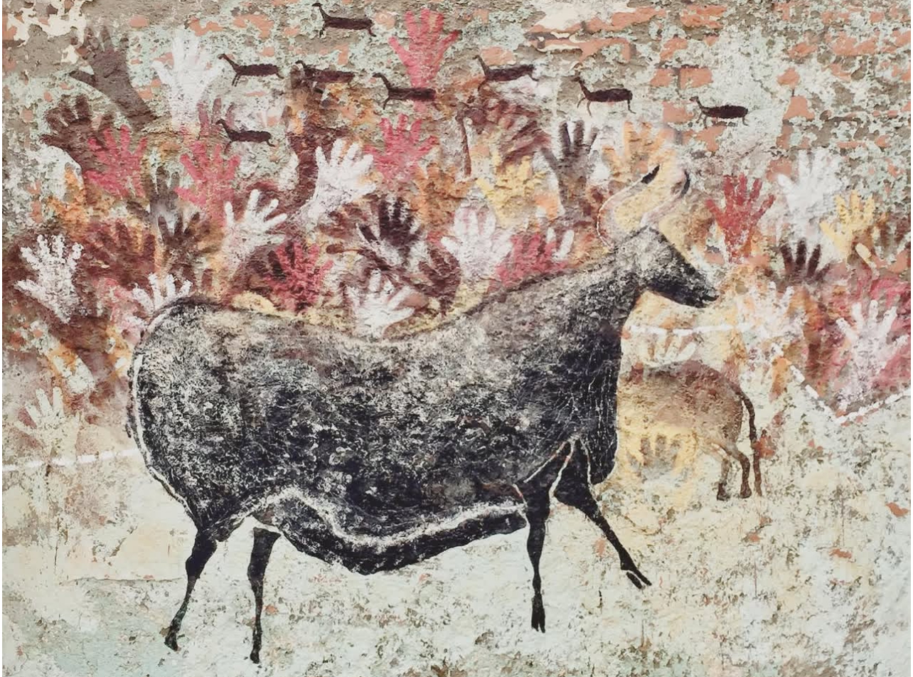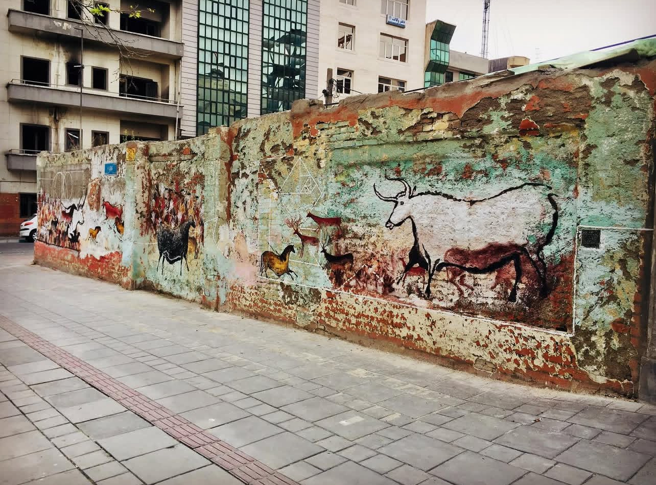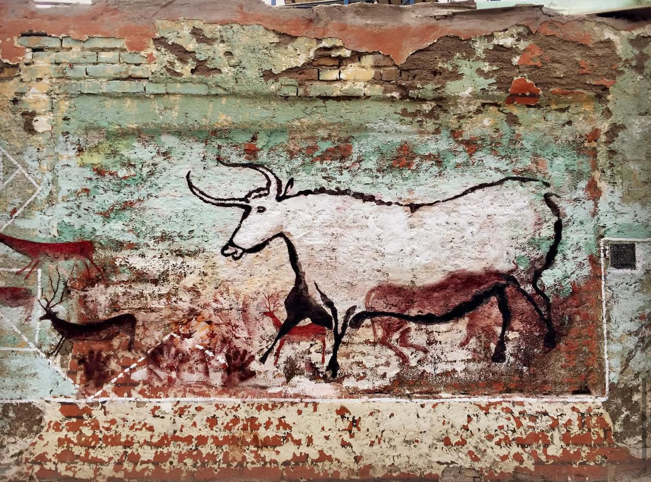 By placing prehistoric visual language within a contemporary city, the work collapses temporal distance, suggesting a continuity of image-making across time. The wall becomes a shared ground where traces of early human expression intersect with present-day urban conditions.